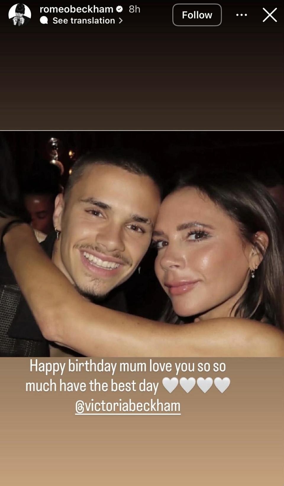 „Честит рожден ден, мамо, обичам те много!“, написа Ромео, показвайки силната връзка помежду им.