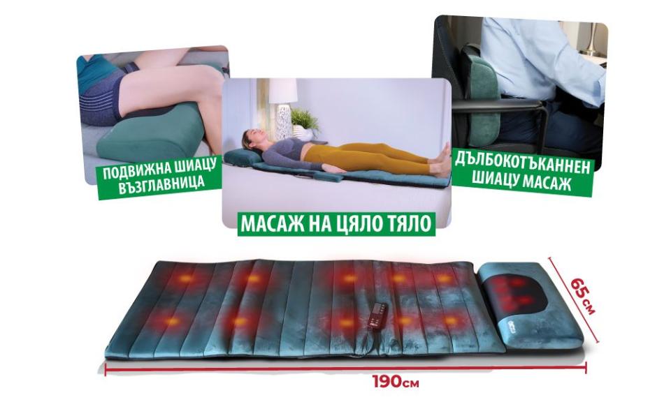 Може да използвате масажната система навсякъде – на пода, леглото или дивана, за максимално пълноценно удобство по време на дългата и здравословна релаксация.