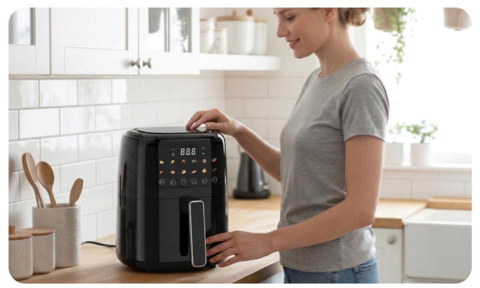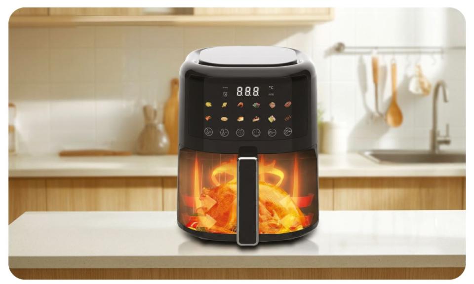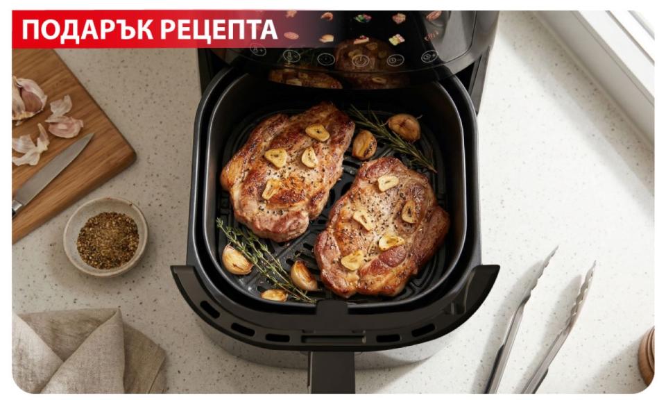 Горещият въздух циркулира равномерно около храната, създавайки хрупкава коричка отвън и сочна вътрешност отвътре - без пържене в олио.
