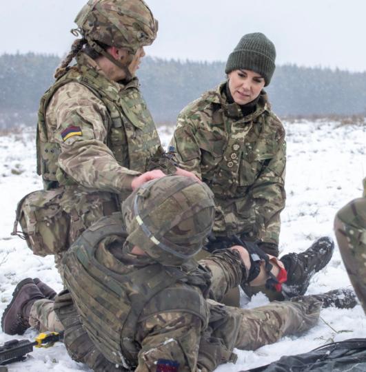 13/25. Кейт Мидълтън по време на бойни тренировки с ирландксата гвардия