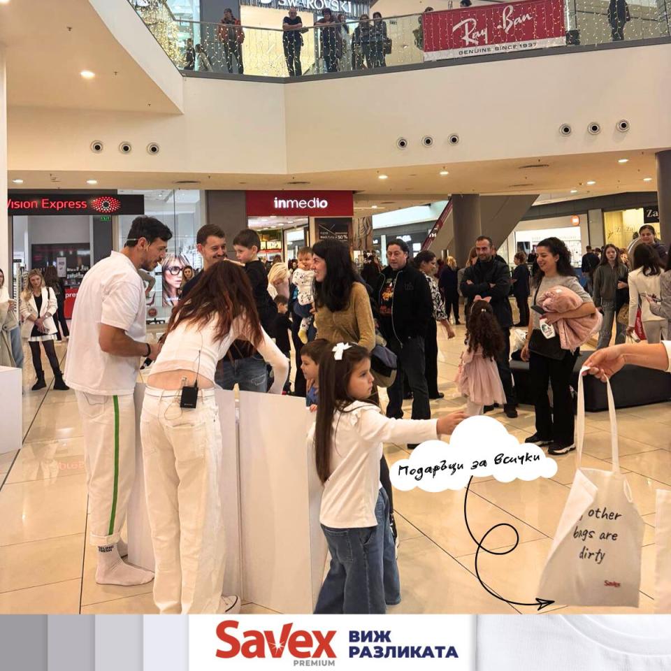 Дани Петканов направи преживяването още по-запомнящо се – обикаляше из мола по брандирани чорапи Savex, раздаваше мостри и заразяваше всички с настроение.