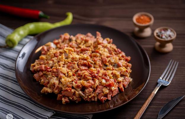 5. Наситнете праза и джоджена за салатата и ги запържете в сгорещеното олио.