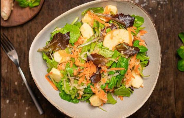 Свежа зимна салата – това не е оксиморон! Толкова пъти сме чували как през зимата страдаме от липса на пресни зеленчуци и в същото време подминаваме очевидно наличните – моркови и ряпа. За да внесат разнообразие, кулинарите от Mate Kitchen добавят хрупкави ябълки и микс от зелени салати. С бърз и лесен дресинг получаваме изцяло нов вкус.